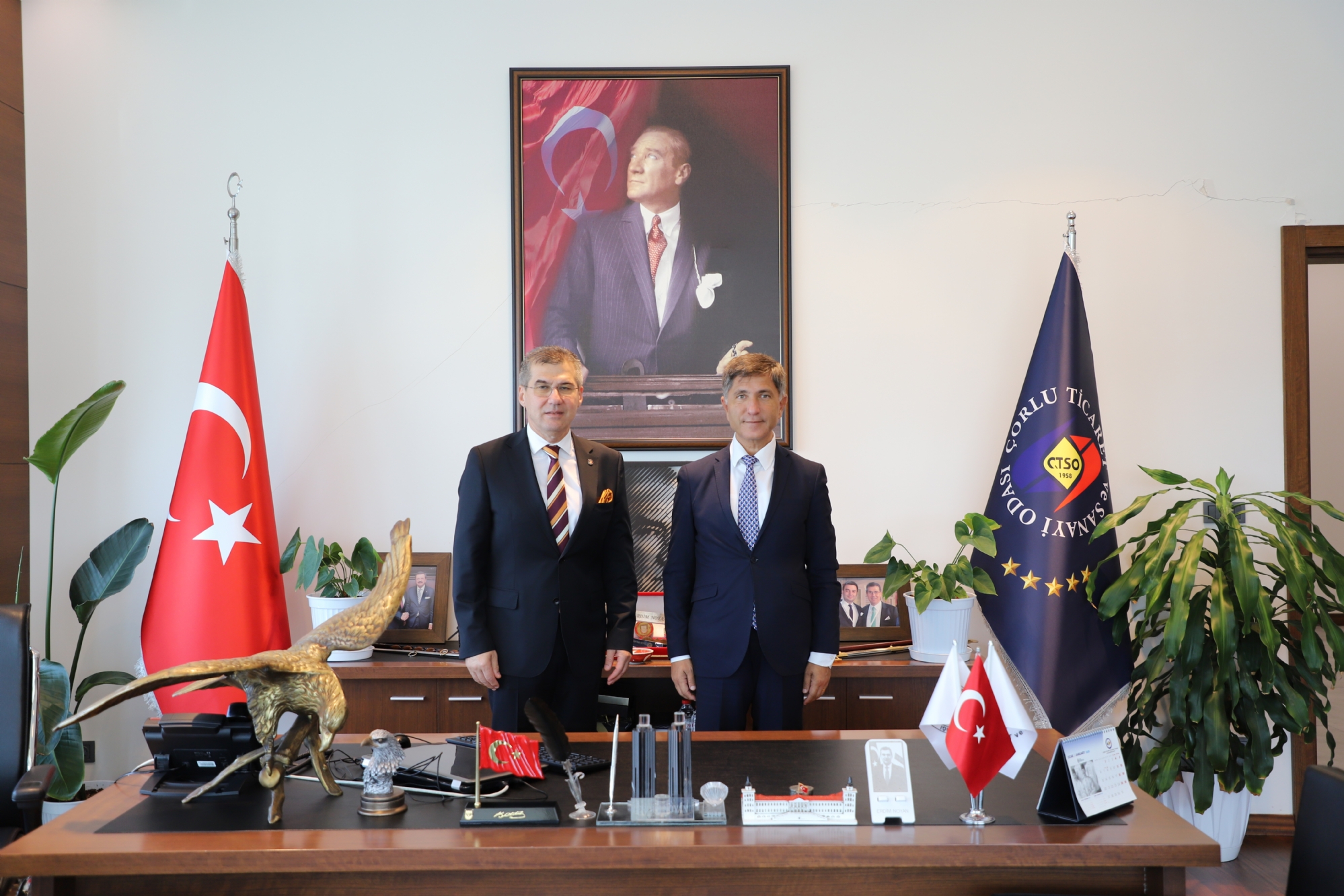 Çorlu Kaymakamı Sayın Niyazi ERTEN Çorlu Ticaret ve Sanayi Odası Meclis Başkanı Sayın Erdim NOYAN’a ziyarette bulundu.
