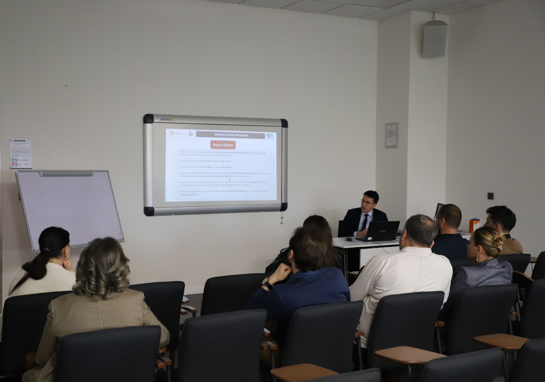 Eğitim programında konuşmacı olarak yer alan KOSGEB KOBİ Uzmanı Ömer ALTIPARMAK, KOSGEB’in güncel destek programları, başvuru süreçleri ve girişimcilerin yararlanabileceği iş geliştirme destekleri hakkında katılımcılara bilgiler aktardı.