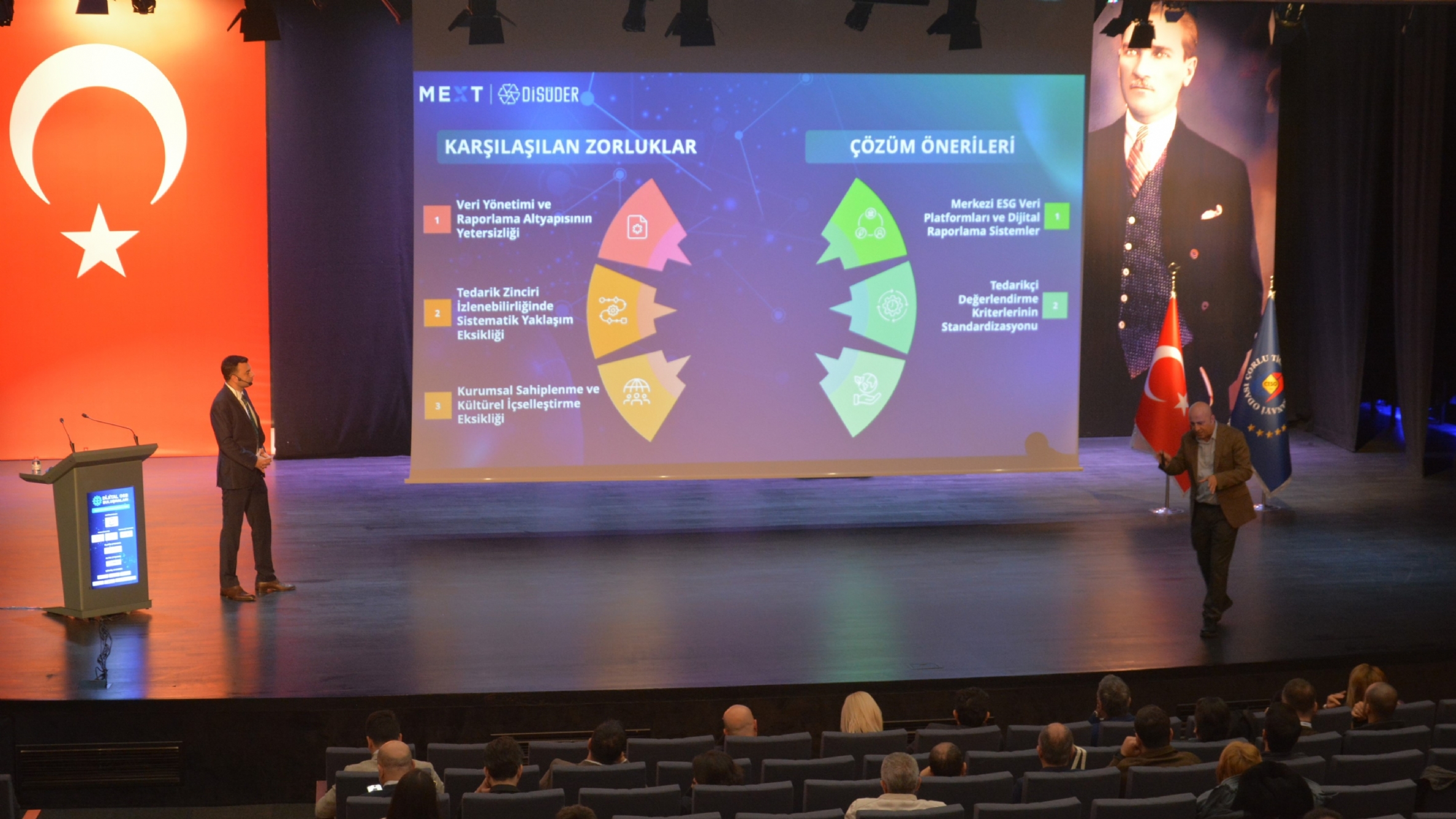 Etkinlikte, dijital dönüşüm, yapay zeka, sürdürülebilirlik, yeşil dönüşüm ve akıllı üretim teknolojileri konuları ele alındı.