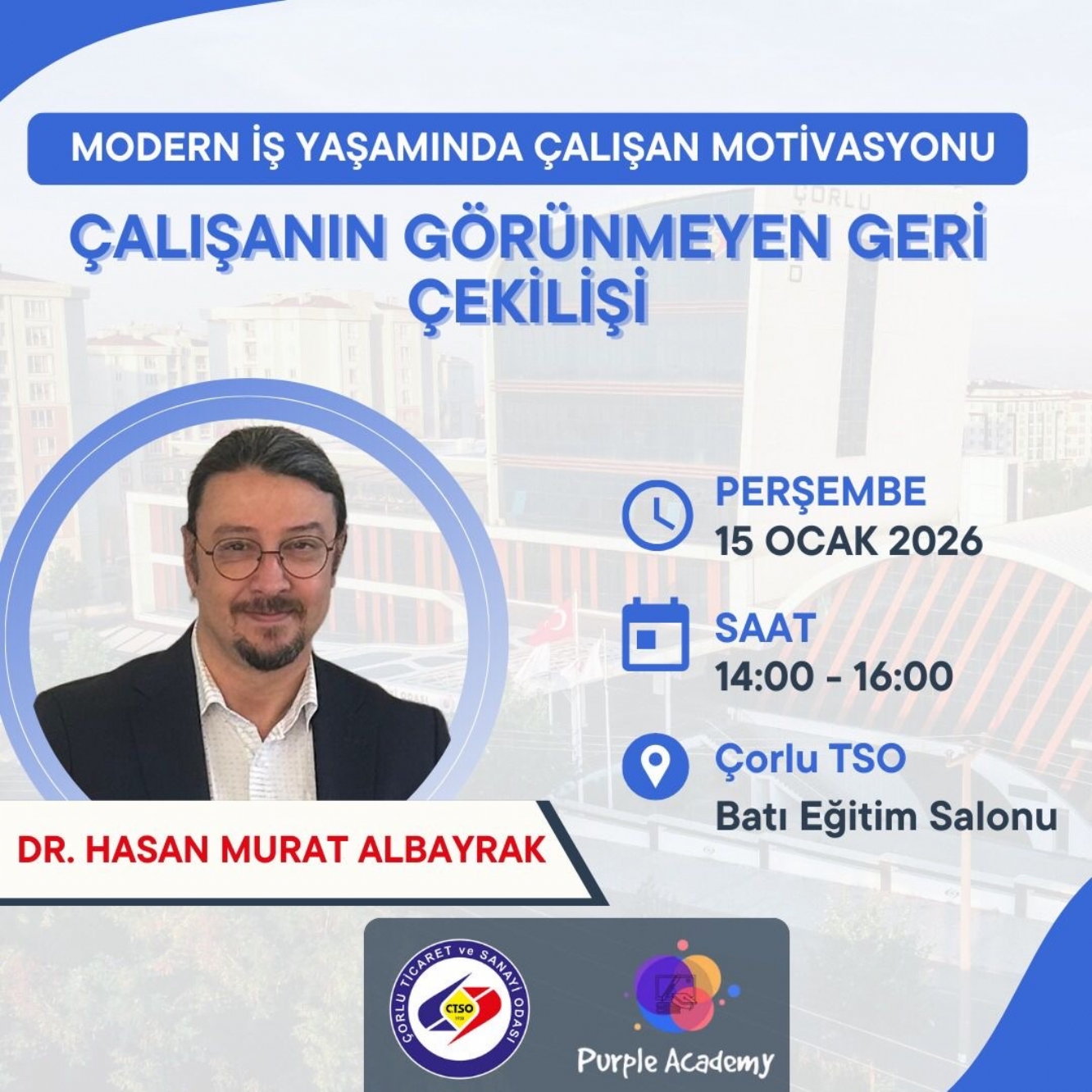 Odamız tarafından 15 Ocak 2026 tarihinde gerçekleştirilecek olan ‘’Modern İş Yaşamında Çalışan Motivasyonu Çalışanın Görünmeyen Geri Çekilişi ‘‘ seminerine katılımınızı rica eder, memnuniyet duyarız.