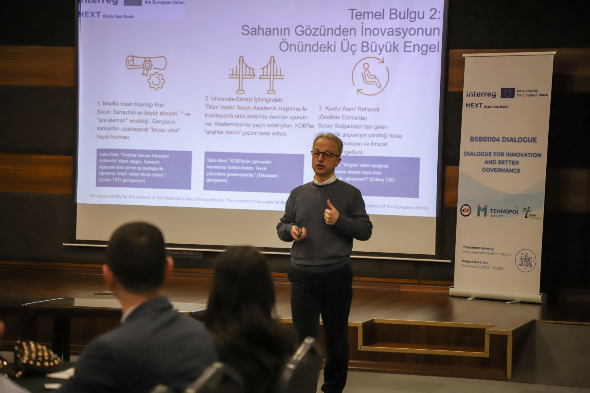 DIALOGUE Projesi ile Türkiye, Bulgaristan ve Romanya’da inovasyon ekosistemlerinin güçlendirilmesi, paydaşlar arası diyaloğun artırılması ve iyi yönetişim ilkelerinin yaygınlaştırılması hedeflenmektedir. Yerel çalıştaylar aracılığıyla toplanan görüşler, Karadeniz Havzası genelinde kurulacak sürdürülebilir iş birliği mekanizmalarının temelini oluşturmaktadır.