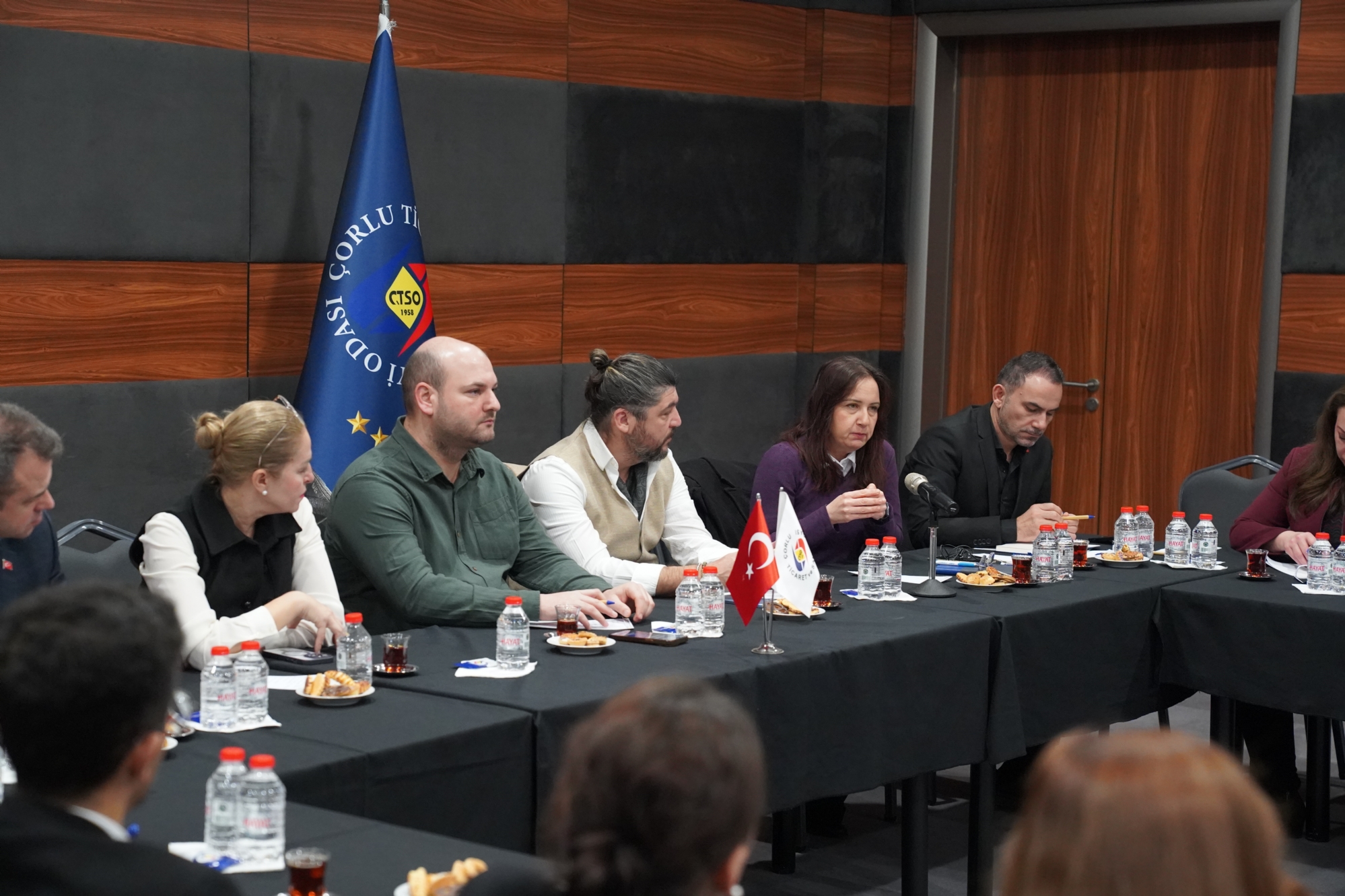 Tekirdağ Büyükşehir Belediyesi Kültür ve Sosyal İşler Dairesi Başkanı Ayça ALBAYRAK, Namık Kemal Üniversitesi Mühendislik Fakültesi Dekan Yardımcısı Pınar CİHAN, Çorlu Belediyesi Yetkilileri, Ergene Belediyesi ETÜT Proje Müdürü Esin SAYIN, Marmaraereğlisi Belediyesi Kültür ve Sosyal İşler Müdürlüğü yetkilisi, Çorlu İş Kur Müdürü Aslıhan MOĞULKOÇ, Çorlu İlçe Milli Eğitim Müdürü Hüseyin ERDOĞAN, Ergene İlçe Milli Eğitim Müdürü Hidayet GÖKTAÇ, Marmaraereğlisi İlçe Milli Eğitim Müdürü Gülyüz YAMAN, Çorlu-1 Organize Sanayi Bölge Müdürlüğünden İmar Sorumlusu Celal ÖKSÜZ, Çorlu Deri ve Karma OSB Müdürlüğü yetkilisi Berna BAYAR, Çorlu TSO Eğitim, Girişimcilik ve İstihdam Komisyonu Başkanı Deniz SARI, Başkan Yrd. Hülya PERİN MERİÇ, Komisyon Üyeleri; Levent İPEKOĞLU, Dış İlişkiler, Fuar, Sergi ve Sektörel Faaliyetleri İzleme Komisyonu başkanı Umut GÜNGÖR, Komisyon Üyeleri Hakkı ŞEN, Deniz SARI, Hülya PERİN MERİÇ, Levent İPEKOĞLU katılım sağladı.