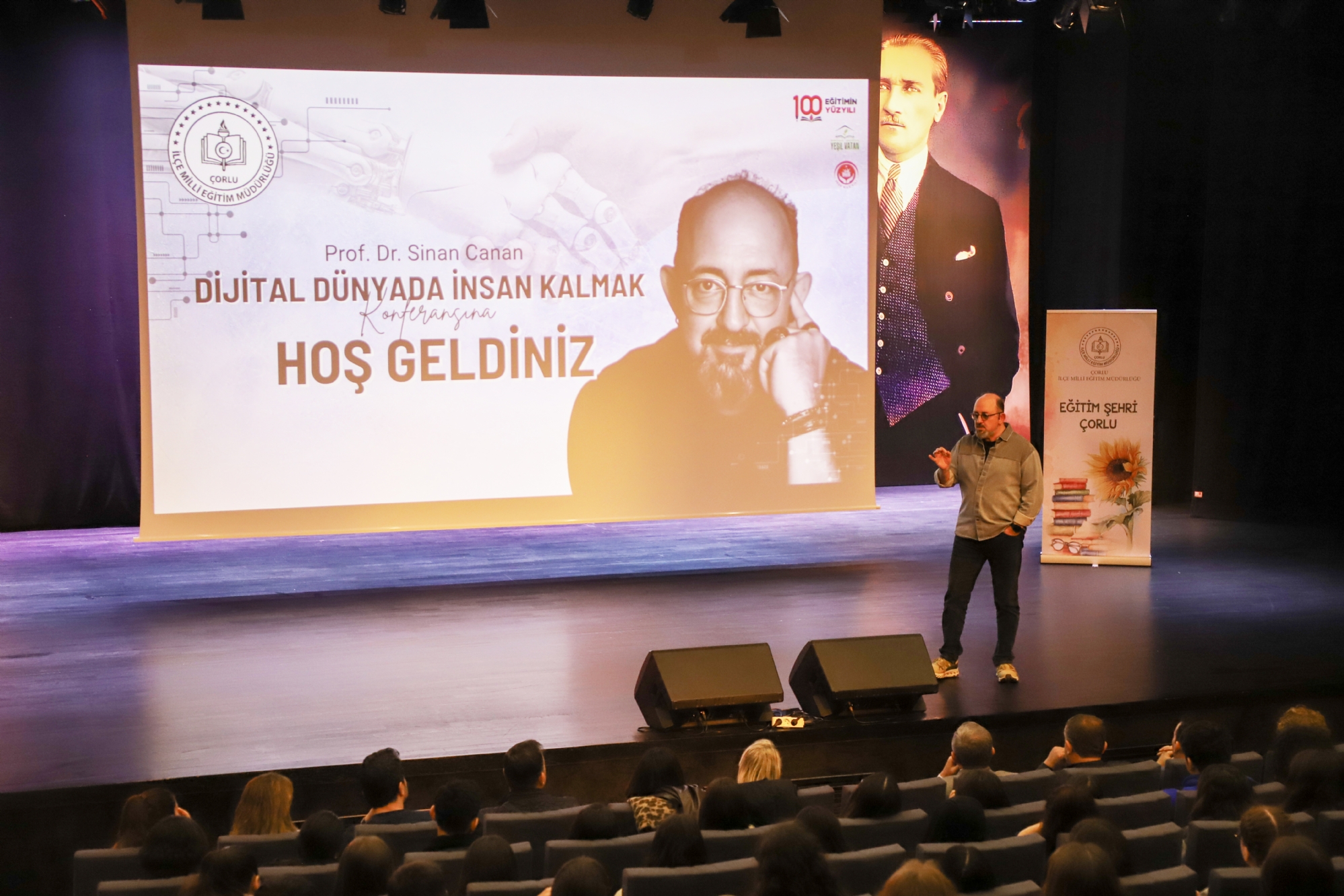 Çorlu Ticaret ve Sanayi Odası ile Çorlu İlçe Milli Eğitim Müdürlüğü iş birliğinde düzenlenen, Prof. Dr. Sinan CANAN’ın konuşmacı olarak yer aldığı “Dijital Dünyada İnsan Kalmak” konulu seminer, geniş bir katılımla gerçekleştirildi.