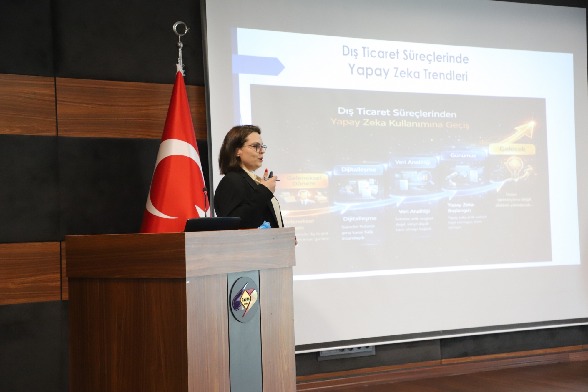 Çorlu Ticaret ve Sanayi Odası tarafından düzenlenen “Dış Ticaret Süreçlerinde Yapay Zeka Trendleri” semineri Batı Eğitim Salonu’nda gerçekleştirildi.