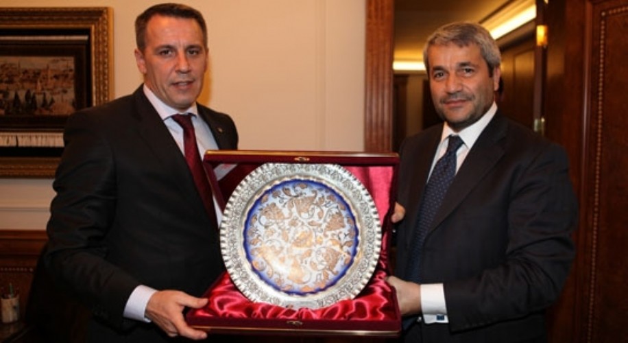 Ziyaretin sonunda Çorlu TSO Yönetim Kurulu Başkanı İsmail GÜLEROĞLU; T.C. Bilim, Sanayi ve Teknoloji Bakanı Nihat ERGÜN' e bir anı tabağı takdim etti.