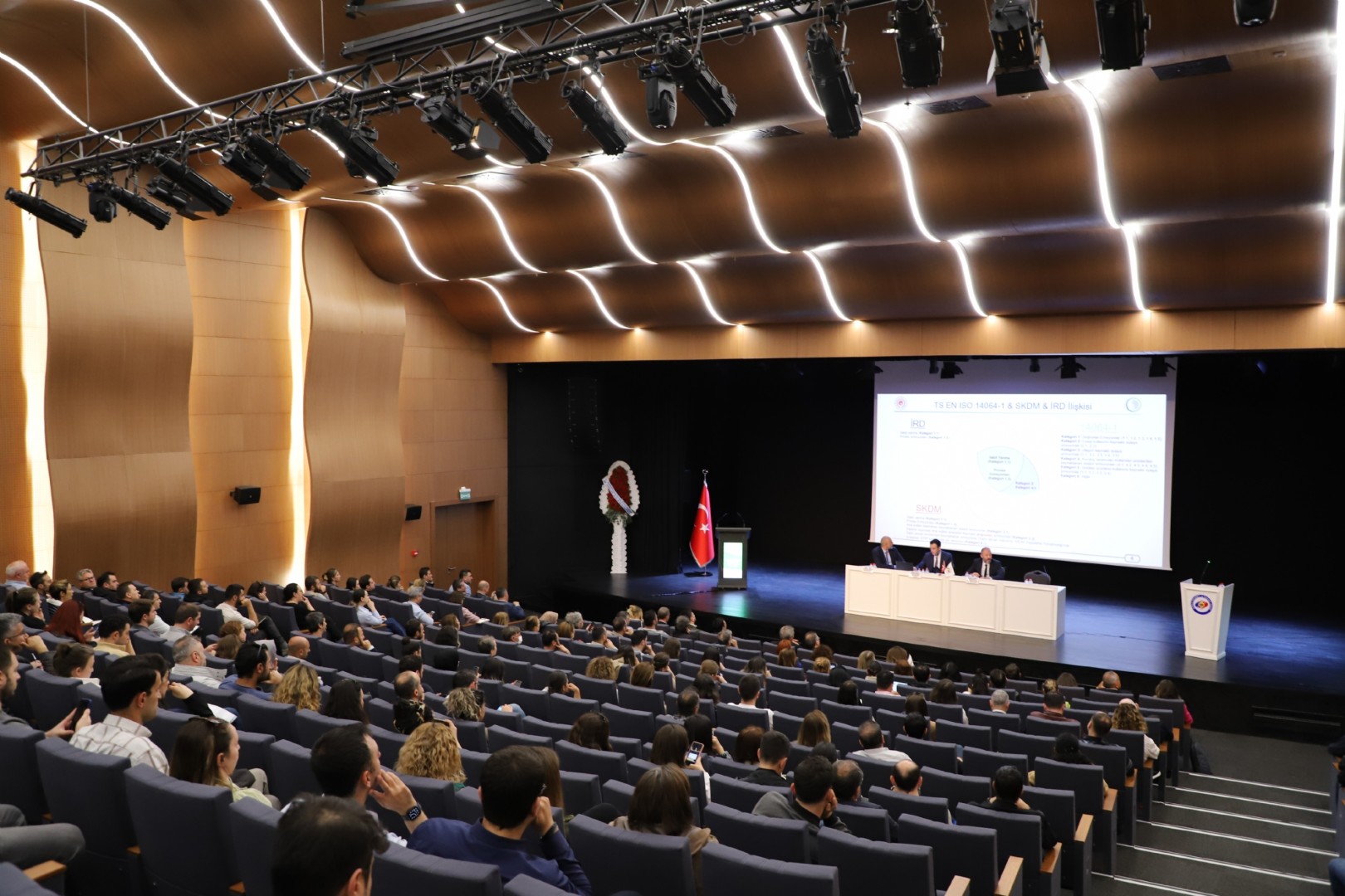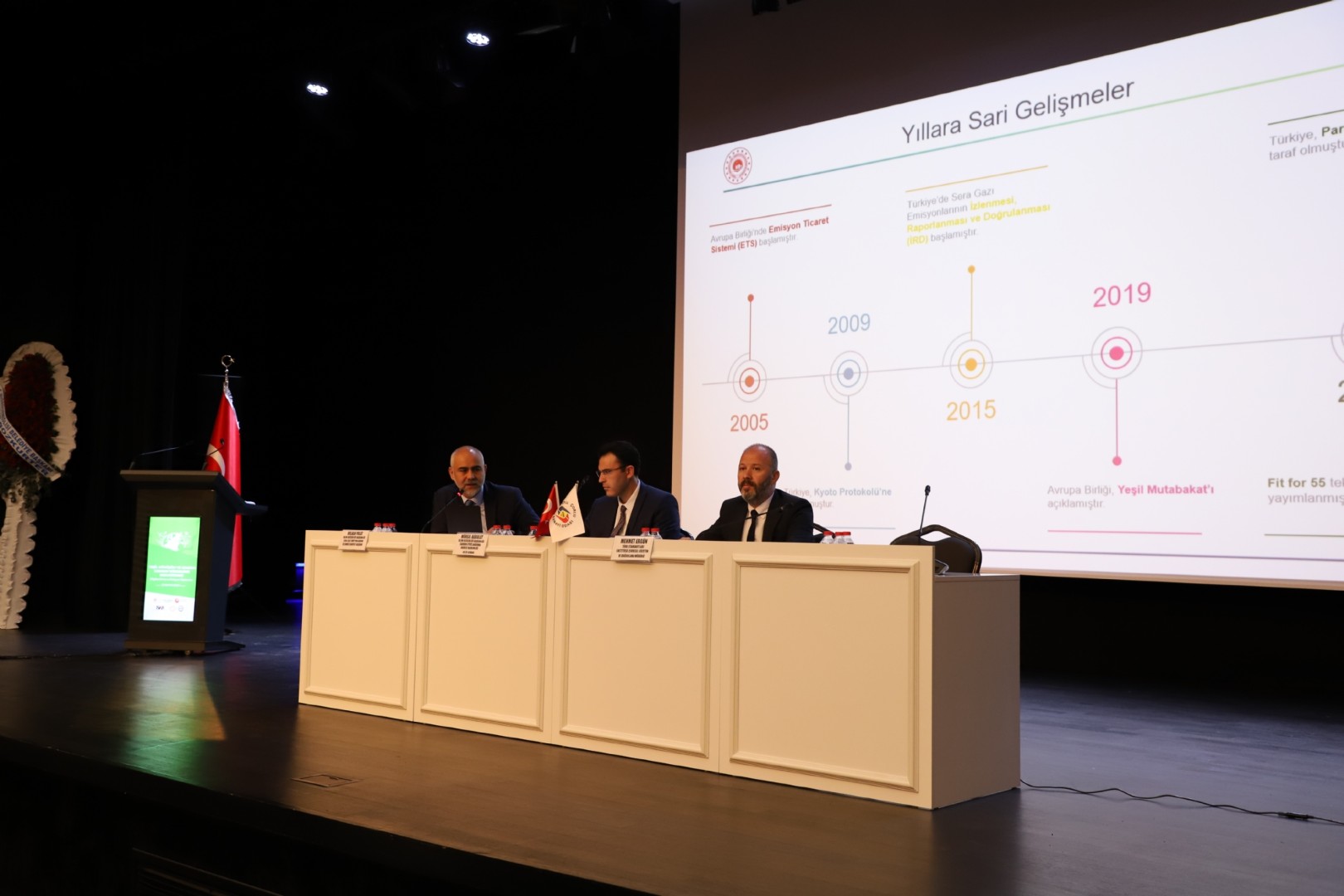 İklim Değişikliği Başkanlığı Sera Gazı Emisyonlarının İzlenmesi Dairesi Başkanı Volkan POLAT’ın Moderatörlüğünü yaptığı toplantının birinci bölümünde; İklim Değişikliği Başkanlığı Karbon Fiyatlandırma Dairesi Başkanlığı Gelir Uzmanı Sn.Mürsel AKBULUT ve Türk Standartları Enstitüsü Çevresel Gözetim ve Doğrulama Müdürü Sn.Mehmet ERGÜN “Yeşil Dönüşüm ve Sınırda Karbon Düzenleme Mekanizması” hakkında katılımcılara bilgiler aktardılar.